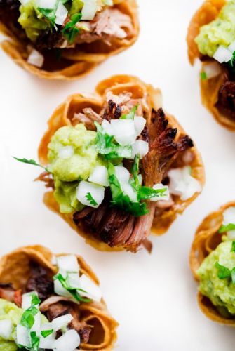 These adorable carnitas tacos bites probably won't last long on game day. The homemade mini tortilla cups might take some extra effort, but the delicious results and satisfaction you get from eating them will make it all worth it. Get the recipe here.