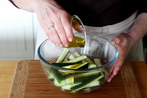 Add the dressing to the bowl with the zucchinis.