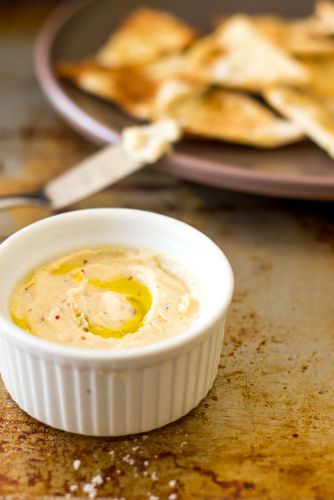 Ricotta and feta cheese are whipped until light and airy in this recipe. Along with the homemade garlic pita chips, this simple yet delicious dip is exactly what your festive spread needs.