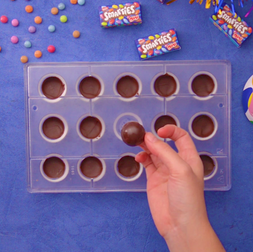 Pour the salted caramel into the center groove,and drizzle with dark chocolate.