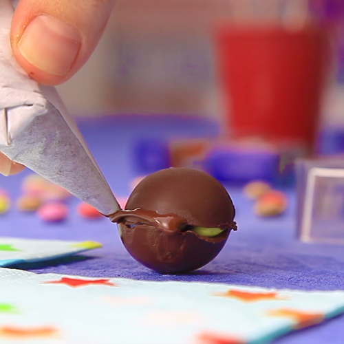 Pour the salted caramel into the center groove,and drizzle with dark chocolate.