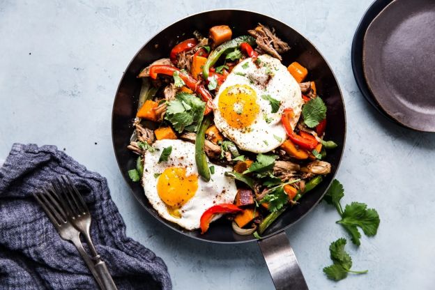 This mouthwatering sweet potato carnitas hash is a healthy, hearty dish that's perfect for your weekend brunches. Bulked up with lots of veggies and fried eggs, it's guaranteed to please the whole family. Get the recipe here.