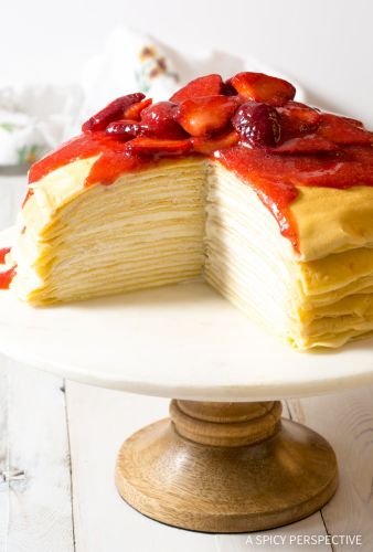 Delicate crepes are layered with lemon ricotta and topped with strawberries in this recipe. This fun "cake" is a great brunch idea because it's like a fancier stack of pancakes! Get the recipe here.