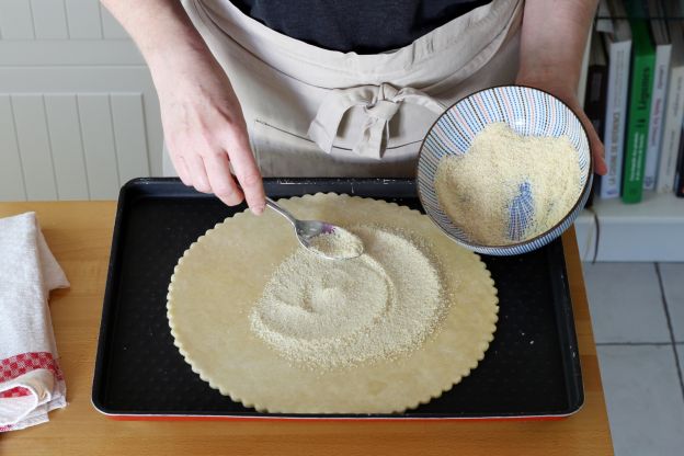 In a bowl, mix together the butter, egg yolk, sugar, and salt.