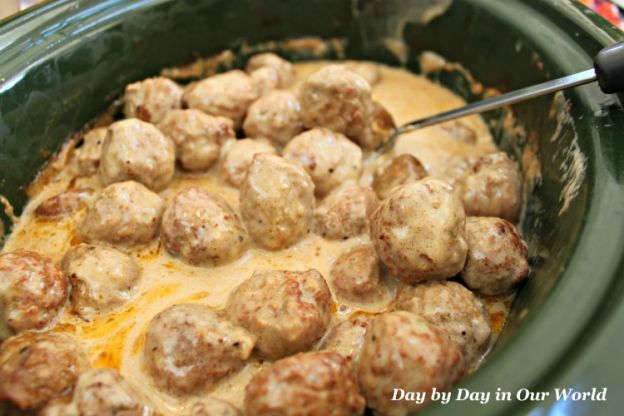 Frozen meatballs and a can of cream of mushroom soup make this dish a cinch to pull together. Although the recipe calls for cooking on high for four hours, you can lower the temperature to let it slow cook for longer, if necessary. Make sure you add the sour cream just 30 minutes before it's done, and use that time to whip up some egg noodles for serving. Get the recipe here.