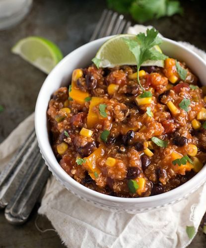 Here's another vegetarian dish that cooks up all together in the crockpot. It's hearty and super healthy, with butternut squash, corn, black beans, quinoa and tomatoes. There's plenty of southwestern flavor in this, so don't hesitate to serve with sour cream, fresh cilantro, jalapeno, etc. Get the recipe here.