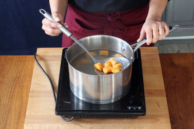 Fill a pot full of water until it reaches boiling point. Add the gnocchi and cook for 6 min.