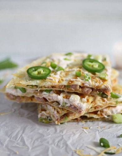 For a spicy way to eat holiday ham leftovers, make these fiery quesadillas with chopped jalapenos and plenty of cheese to balance the heat. Serve with your favorite garnishes, plus homemade salsa and guac for a substantial snack or lunch. Get the recipe here.