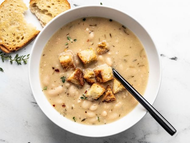 This cozy white bean soup is a super easy, cheap and delicious meal you can enjoy any night of the week. Spruced up with garlic, rosemary and thyme, it's full of simple yet delicious flavors that work exceedingly well together. Get the recipe here.