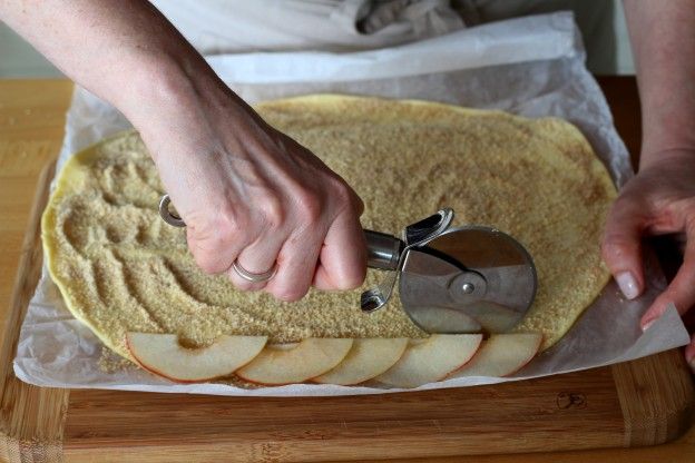 4. To get the first row, line up the apples in a straight line and cut out the section. Continue until all the dough is all used up.