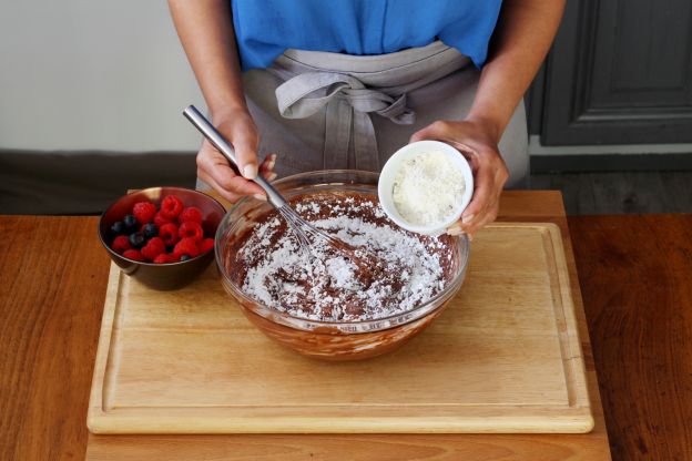 Fold in the flour, and stir everything together until the batter takes on a smooth and homogeneous texture.
