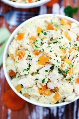 You don't have to be British to enjoy this royal dish of cold curried chicken salad. This recipe keeps it fancy with the addition of golden raisons, dried apricots and slivered almonds for a bit of crunch.