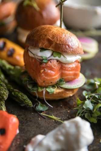 Looking for a way to step up your finger food game? Try these grilled salmon sliders with garlic lemon aioli, served on brioche slider buns with watermelon radishes and microgreens. They're elegant enough for your next dinner party but also easy enough for snacks or meals any day of the week. Get the recipe here.