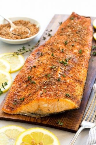 To make restaurant-style cedar plank salmon at home, you will need a cedar plank, but the flavor payoff is totally worth it. This recipe walks you through the process and uses a sweet and savory gluten-free spice blend to enhance the taste even further.