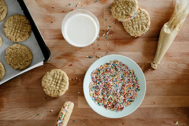 The classic childhood cookie gets a nutty update in this recipe. Here, almonds and pistachios are used instead of the more traditional peanuts, making a sweet filled cookie that's the perfect dessert for any picnic.