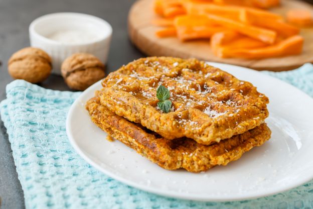 These carrot waffles offer a unique twist on a classic breakfast, blending shredded carrots into a lightly spiced waffle batter. The addition of cinnamon, crunchy walnuts, and coconut flakes makes for a deliciously savory and sweet start to the day.