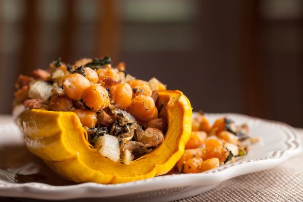 Stuffed delicata squash is a vibrant and wholesome dish perfect for autumn. Roasted delicata squash halves are filled with a savory mixture of chickpeas, onion, and kale, making for a satisfying and nutrient-packed meal. This dish is not only delicious but also visually appealing, showcasing the beautiful colors of fall.