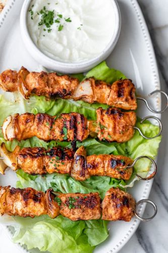 If you've never tried these Lebanese marinated chicken skewers before, you've been missing out! They're bursting with citrusy and garlicky flavors, absorbed from a quick and easy marinade. Serve them with garlic sauce and fresh pita bread for a delicious Middle Eastern-style meal. Get the recipe here.