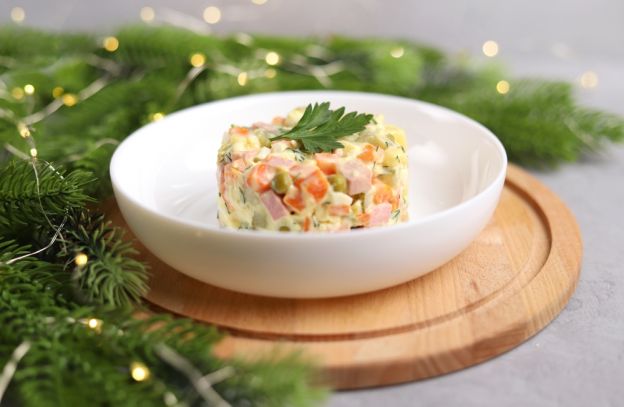 Olivier Salad, also known as Russian Salad, is a quintessential dish served during New Year’s Eve celebrations in Russia, symbolizing abundance and festive cheer. This creamy salad is made with boiled potatoes, carrots, peas, eggs, and pickles, all bound together with mayonnaise. Often enriched with diced chicken or ham, Olivier Salad is a staple of holiday feasts, offering a comforting and flavorful combination of ingredients. Its popularity across Eastern Europe and its association with special occasions make it a beloved part of Russian New Year's traditions