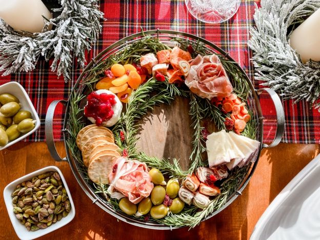 A charcuterie wreath combines the best of holiday cheer with delicious bites of cured meats, cheeses, and fresh garnishes, arranged in the shape of a festive wreath. It’s a show-stopping centerpiece that s as visually stunning as it is delicious. Perfect for entertaining, it allows guests to pick their favorite bites while adding festive flair to your holiday table. For a special holiday flourish, tie a small bow with ribbon and place it at the base of the wreath.