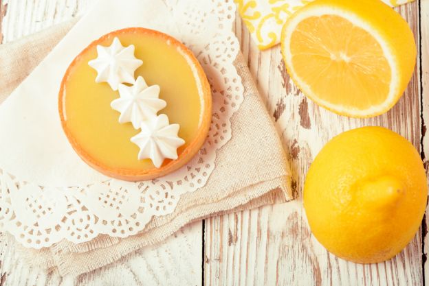 9. Spoon the cooled lemon curd into the tart shell, smoothing the top with a spatula.