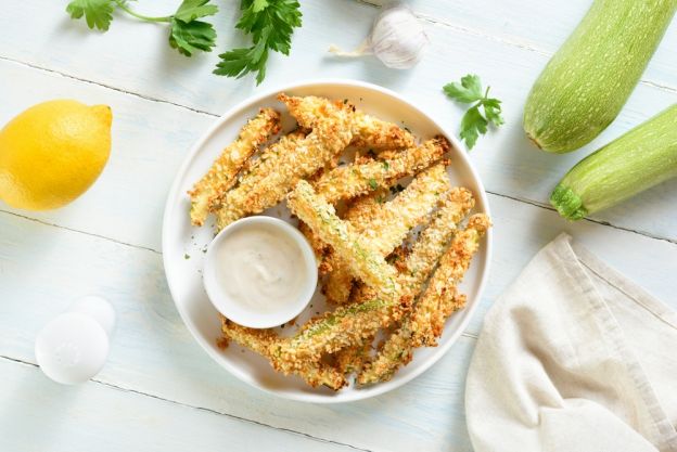 4. Arrange the coated zucchini fries in a single layer in the air fryer basket, spraying lightly with cooking spray. Air-fry for 8-10 min., shaking halfway through, until golden and crispy. If using an oven, bake on a lined sheet for 20-25 min., flipping halfway through.