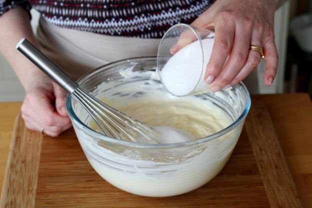12. baking tin. Do the same with the other mixture, placing the dolop directly in the center of the previous one.