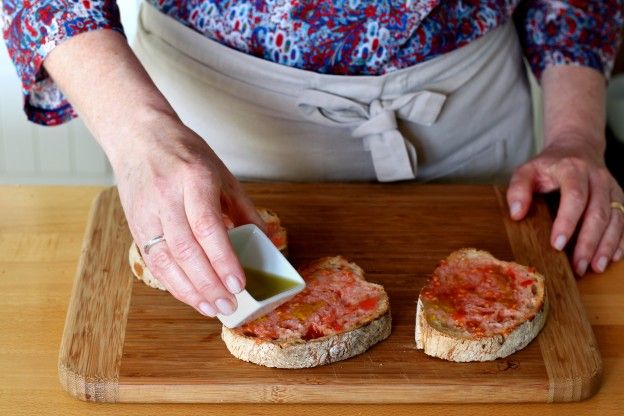 Drizzle each slice of bread with some extra-virgin olive oil.
