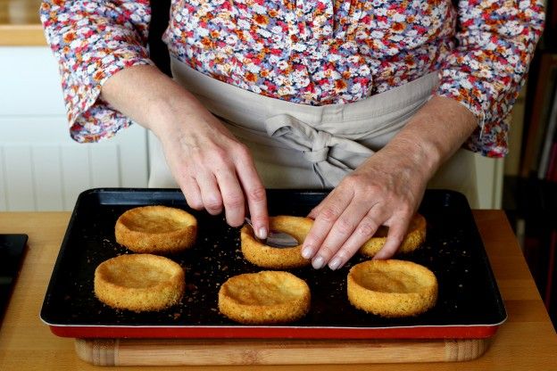 Wait for 5 minutes before gently pressing down on the center of each sablé using a teaspoon. This should make them just a tiny bit concave.