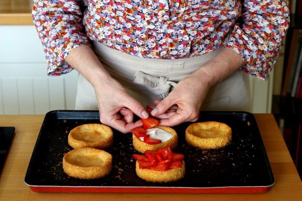 Gently place the strawberries on top of the cream. Top with the crushed pistachios and serve immediately.