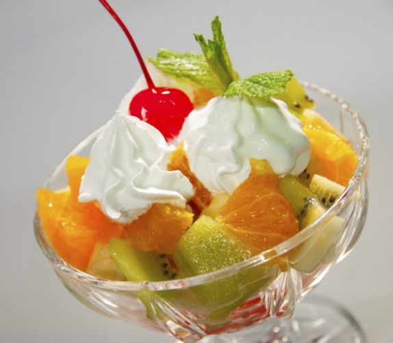 You'd be surprised how quickly a touch of whipped cream or sweetened yogurt can transform your basic fruit salad into an elegant dessert. We love the contrast between  the velvety cream and the crunch of fresh fruit.