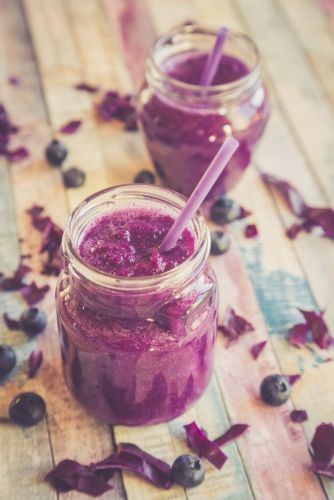 If you're looking to spice up your mornings, then this smoothie is for you! Start with 1 cup cooked beets, mix with 1/2 cup blueberries, 1 Granny Smith apple and then blend. To finish, grate 1 inch of fresh ginger on top and stir before serving.