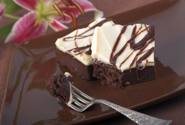 If you like white chocolate, then you'll love a brownie topped with white chocolate frosting! Simply frost the brownie once it's cooled and drizzle some chocolate syrup on top for the ultimate black-and-white treat.