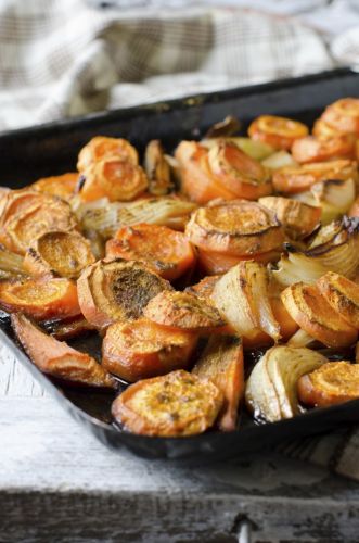 Sauteed sweet potatoes and carrots in olive oil—so simple yet such a delight! Add other ingredients of your choice: fresh parsley or basil, finely chopped garlic and some Cayenne pepper (if you like a little heat). If you must have meat, add some bacon lardons or pancetta cubes for even more flavor.