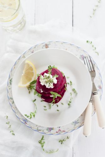 Alternate fresh Mozzarella rounds and sliced beets on your sandwich bread. Drizzle with olive oil and garnish with a few basil leaves to complete the masterpiece.