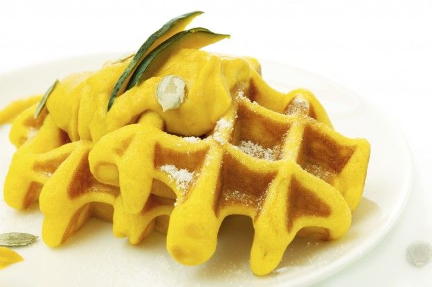 Give your waffles a seasonal fall feel by topping them with creamy pumpkin puree.