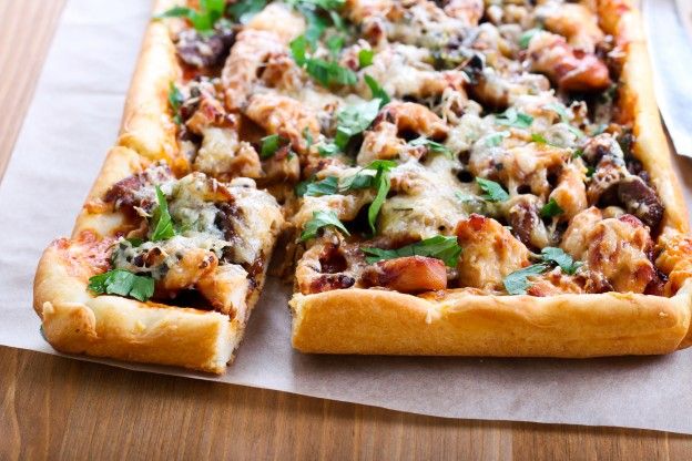 Here's a tasty way to use up extra chicken breasts. Cut the chicken into strips, and cook in a buttered skillet. Spread out 1 rectangular ready-made puff pastry crust, and top with the cooked chicken, 1 can of chopped artichokes and 1 small can of mushrooms. Beat 3 eggs with 1 1/2 tablespoons sour cream and a bit of salt and pepper. Pour over the tart, and bake for 30 to 35 minutes at 350 °F. Tip: Add any other vegetables you like, to bulk up the nutrient content: cooked broccoli, peas, sweet corn, etc.
