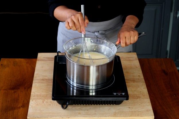 Heat the cream mixture on low heat, stirring constantly until it thickens.