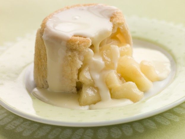 For this recipe, peel and chop your apples, and cook them in a skillet with a bit of sugar and water. Roughly crush the apples with a fork. Place sponge fingers into the bottom of your Charlotte mold and around the perimeter. Add half of the apples. Cover with more sponge fingers, and repeat the process once more. Let cool in the fridge for at least 4 hours before serving.