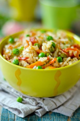 This elegant side dish is delicious and easy on the pocket. Saute 2 minced onions in a saucepan, then add 2 cups white rice, and cook for 2 minutes. Add 2 pounds diced chicken, 2 carrots, cut into thin matchsticks and 3 cups chicken stock. Simmer for 15 minutes, then add 3 cups fresh peas and cook covered for 10 minutes more. Season to taste, and add a pinch of saffron for a more exotic flavor.