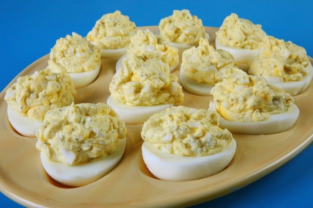 Sometimes classic is the best route to take. Coarsely crumble the yolks of 2 hard-boiled eggs, and add a dash of lemon juice and a bit of mayonnaise, before stuffing into the hollow egg whites.