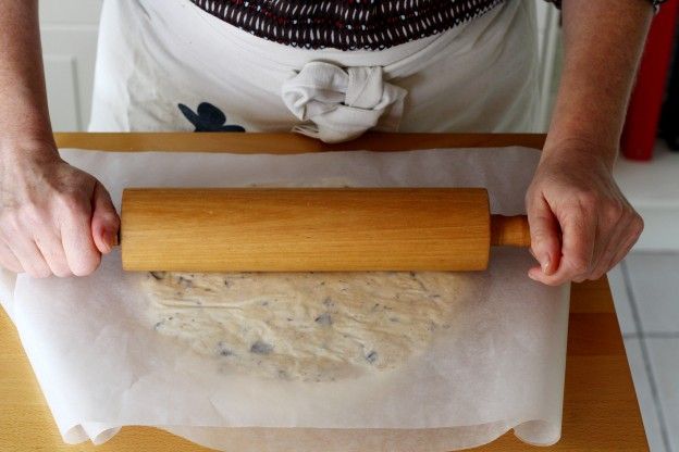 Use a rolling pin to spread the dough into a circle about 2-cm thick.