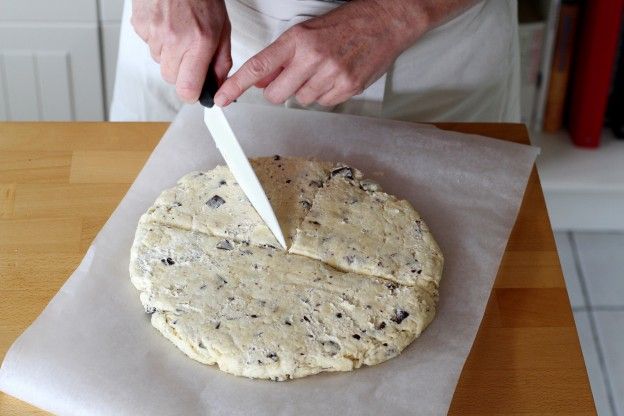 5. Using a pizza cutter or a knife, slice the edges of the puff pastry into strips that can be wrapped over the chocolate and strawberries. Starting with the flap at the top, fold over each strip in a slightly diagonal direction so that they resemble a braid.