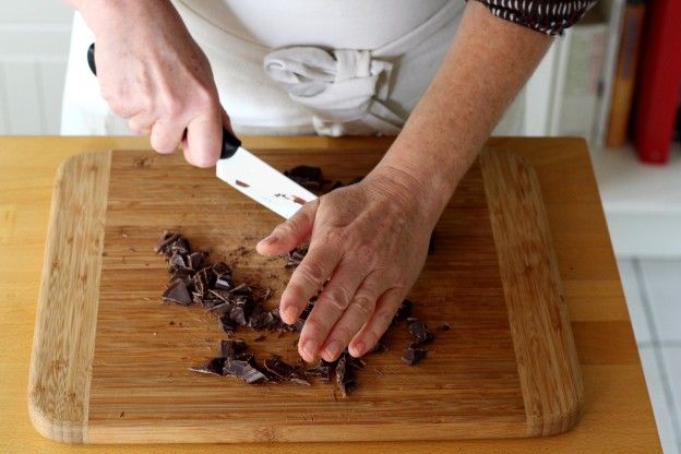 4. Place the bar of chocolate in the center, then top with a layer of strawberry halves.