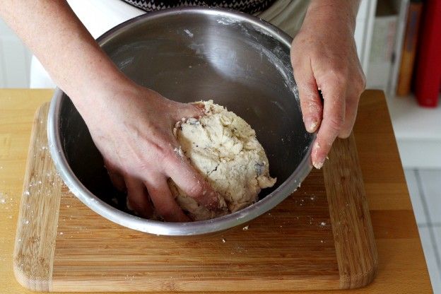 You want to form a smooth ball of dough, but you don't want the mixture to be too wet either.