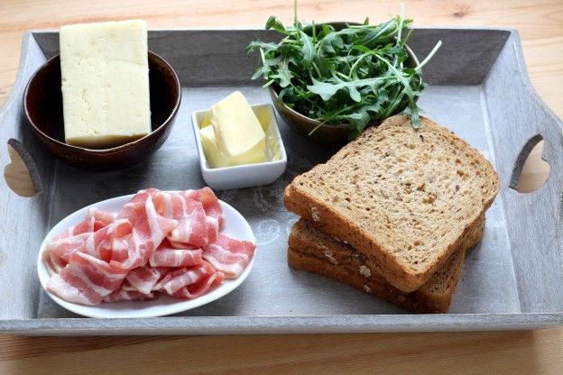 - Add one slice of ham, cherry tomatoes, and mozzarella cheese.
