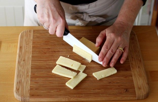 Cut the cheese into small, thin slices.