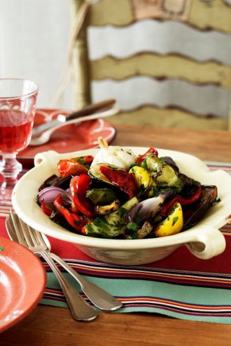 Perhaps you've only roasted bell peppers in order to easily remove their skin but they are also delicious when cut into pieces and roasted. Use mixed peppers and you can make a stunning roasted vegetable salad which goes tastefully with roast chicken or a whole fish cooked on the grill.