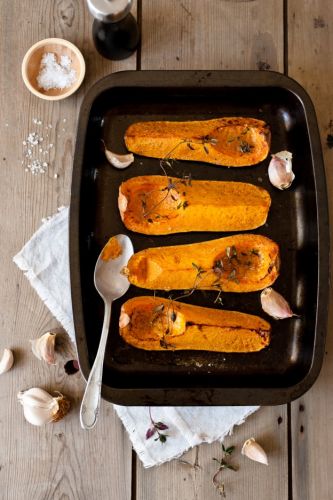 Here's an idea to revert to throughout the winter. Simply cut the butternut squash in half lengthwise, remove the seeds, then brush with olive oil, sea salt and thyme. Roast at 400 °F for 30 minutes or until the squash is tender and cooked through.