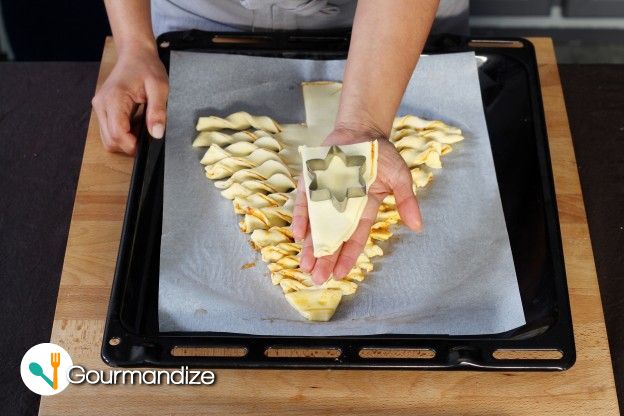 Using the puff pastry scraps, cut out a star using a star-shaped cookie cutter.